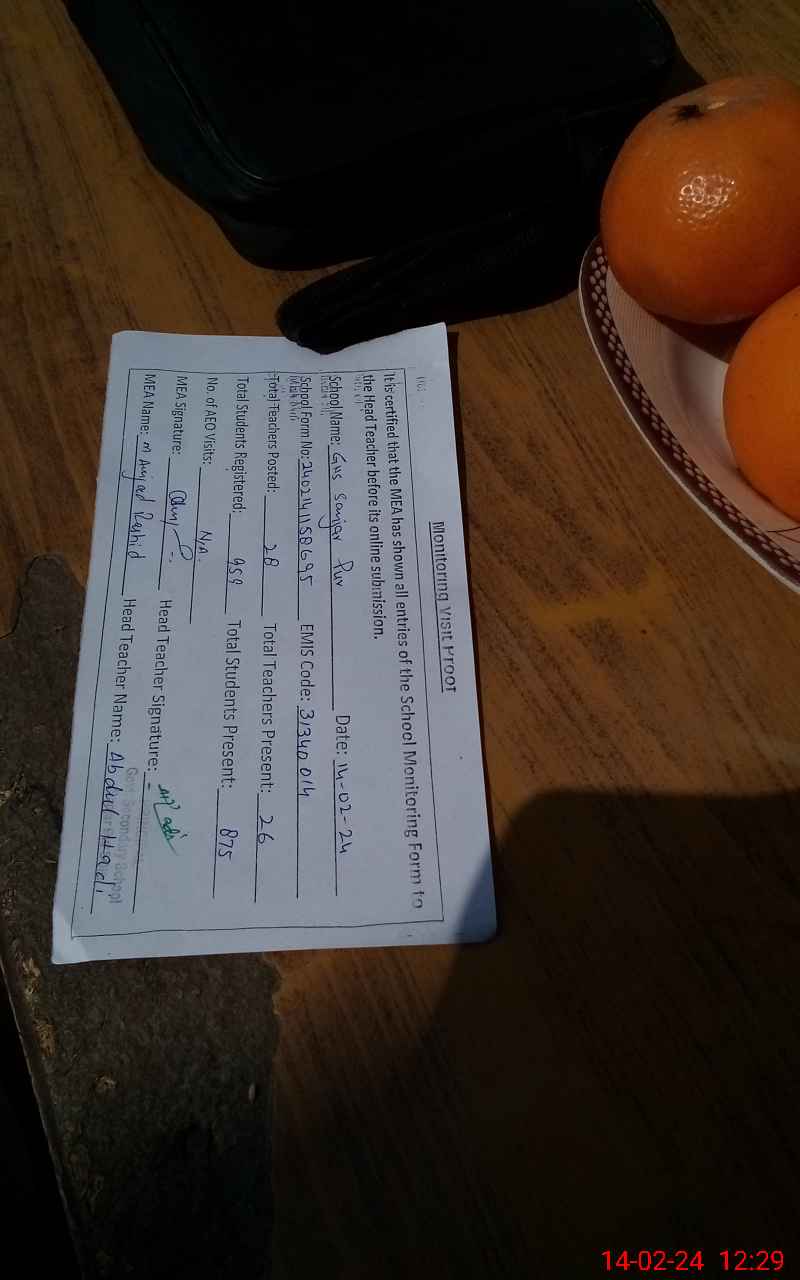 | EMIS Code: 31340014 | Name of School: GHS SANJAR PUR | |||