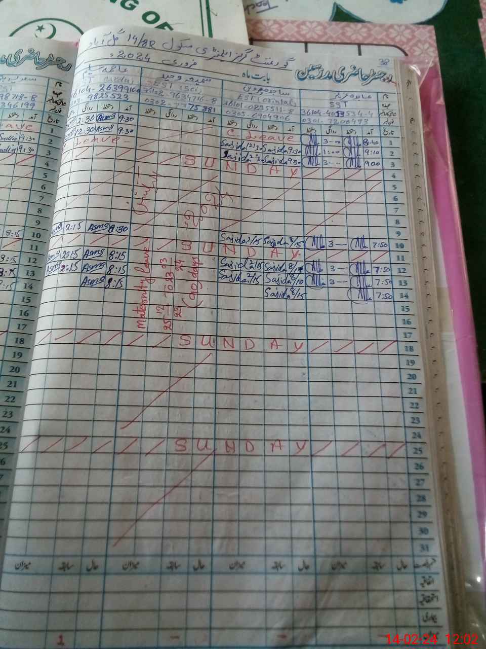| Leave | Duty | Absent | Maternity | Medical | Ex- Pak |
