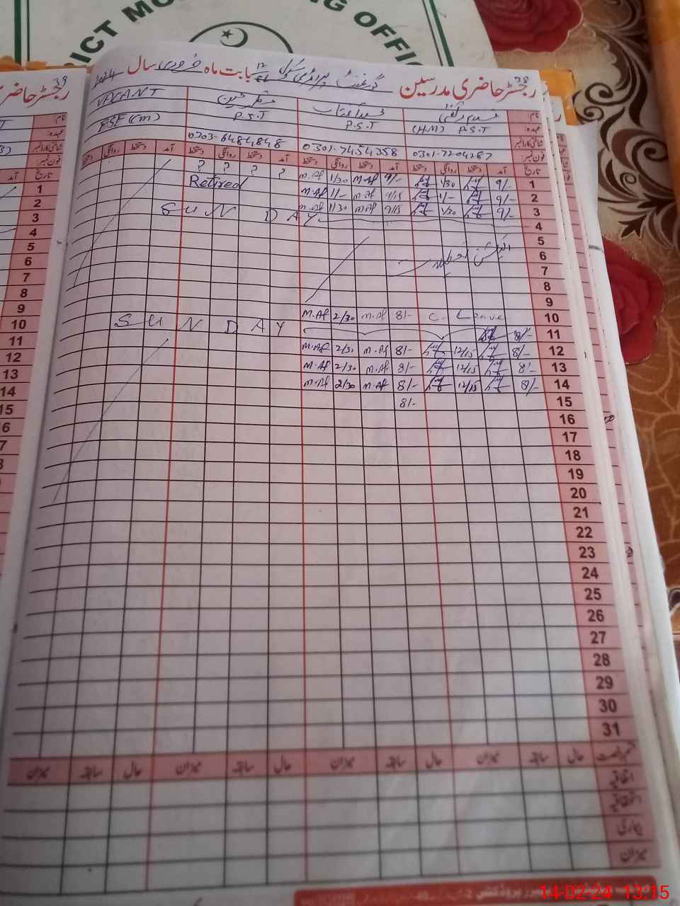 | Name: Mu**** Sa**** Designation: (School Headmaster's/Headmistress's) PST Temporarily Head Phone/Cell Number: 03**** |