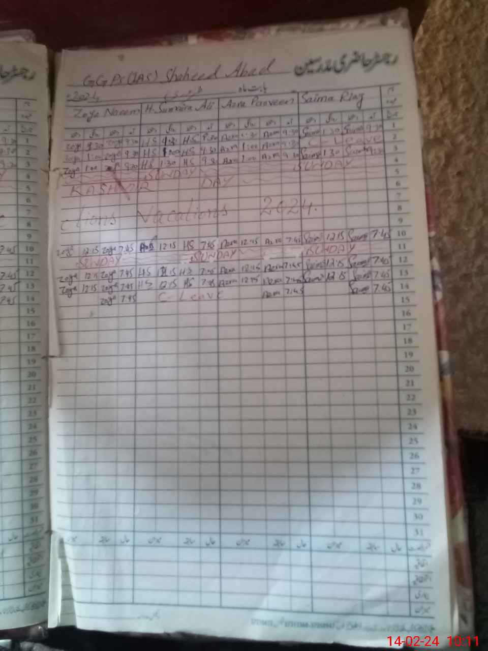 | 31**** | Ha**** Su**** Al**** | PST | Regular | 2 | 0 | 0 | 0 | 0 | 0 | 0 | 0 | 2 | Casual |