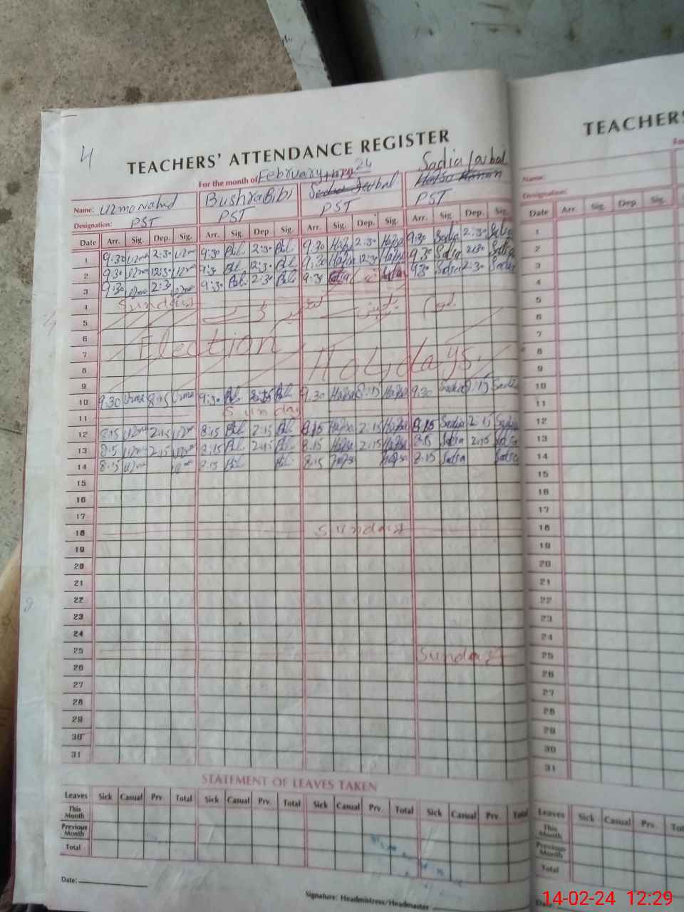 | Leave | Duty | Absent | Maternity | Medical | Ex- Pak |