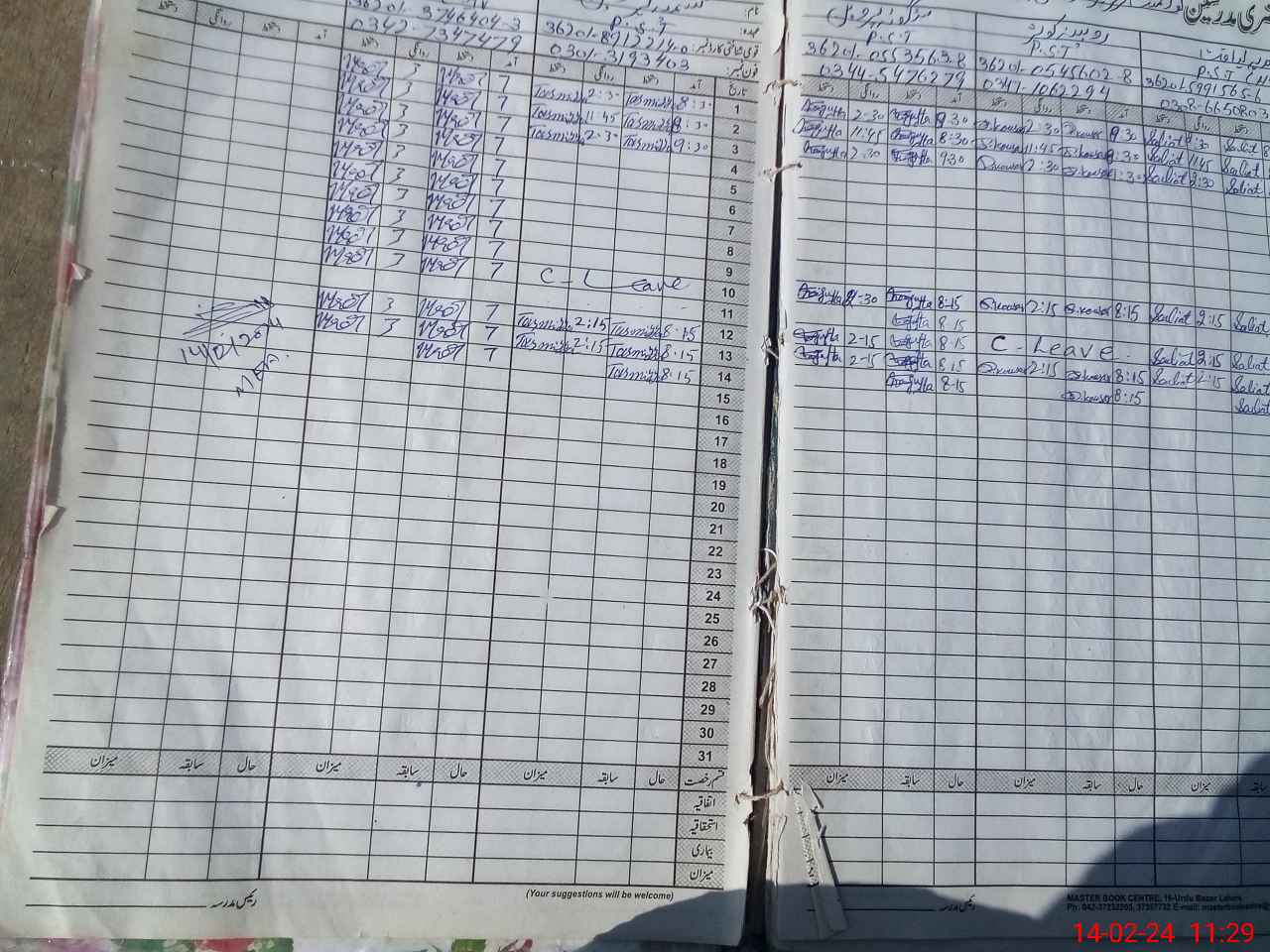 | CNIC | Full Name | Designation | R/C | Absence During Last Calender Month |