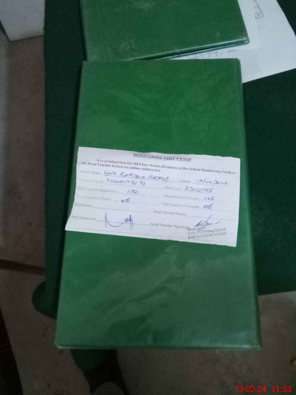 | Attendance Register | Head Teacher | MEA with School | Visit Proof |