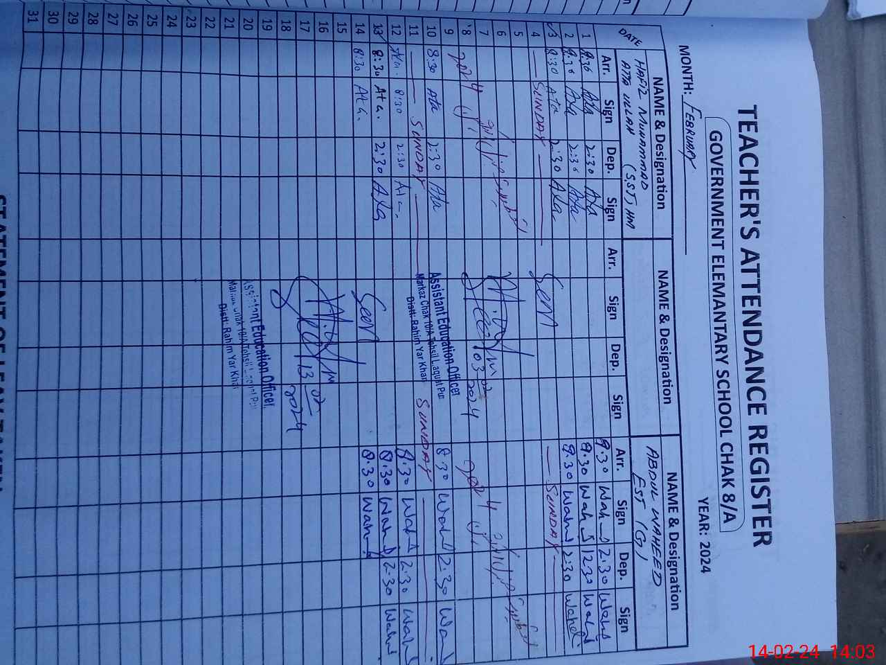 | Name: HA**** M.A**** Designation: (School Headmaster's/Headmistress's) S.S.T Phone/Cell Number: 03**** |