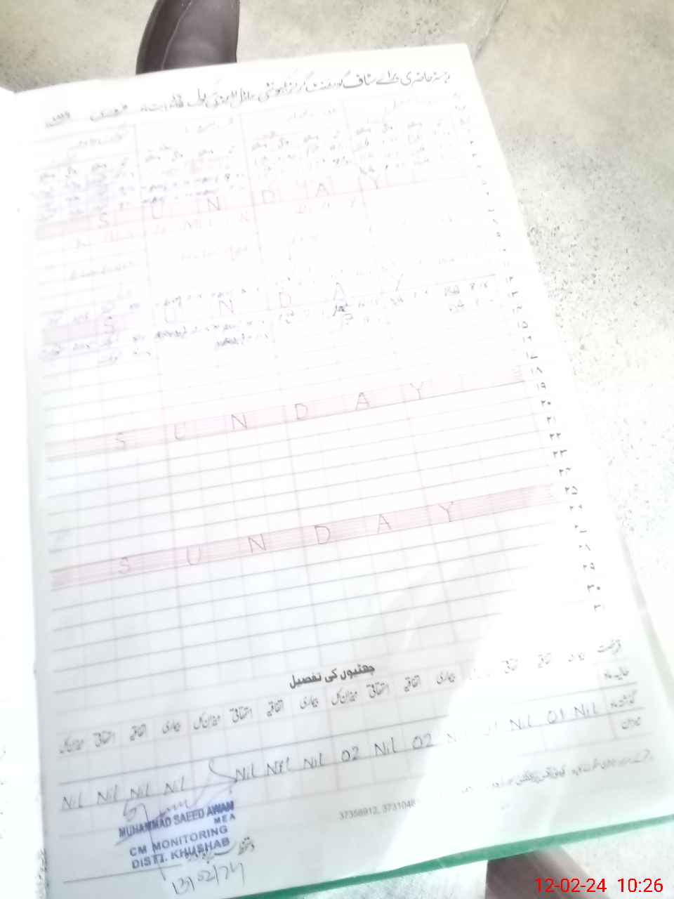| CNIC | Full Name | Designation | R/C | Absence During Last Calender Month |