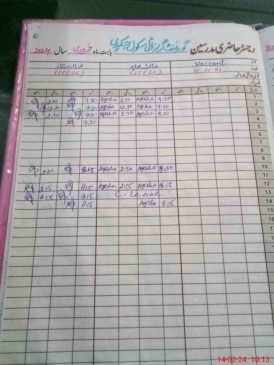 | CNIC | Full Name | Designation | R/C | Absence During Last Calender Month |