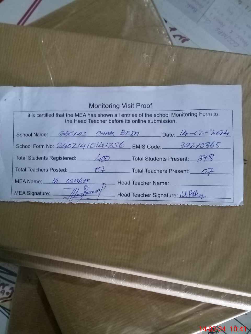 | EMIS Code: 39210365 | Name of School: GGCMS CHAK BEDI | |||