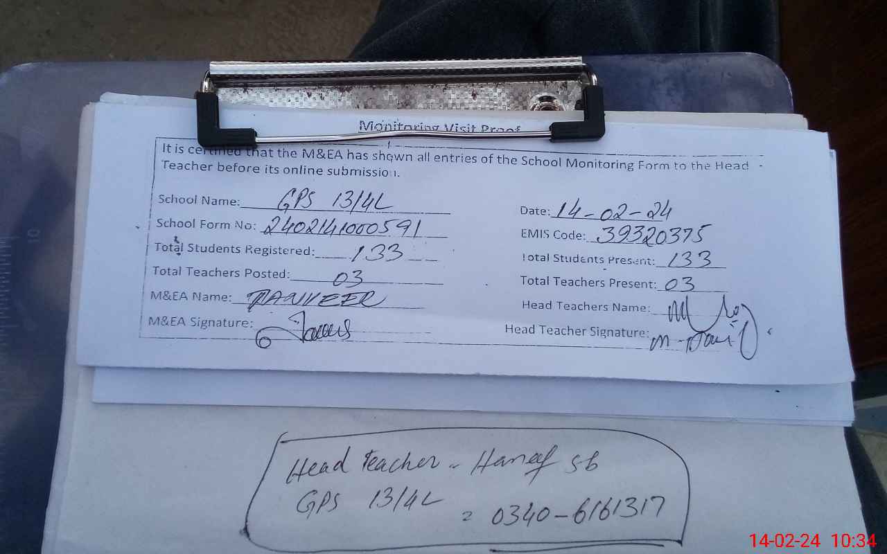 | EMIS Code: 39320375 | Name of School: GPS CHAK 13/4-L | |||