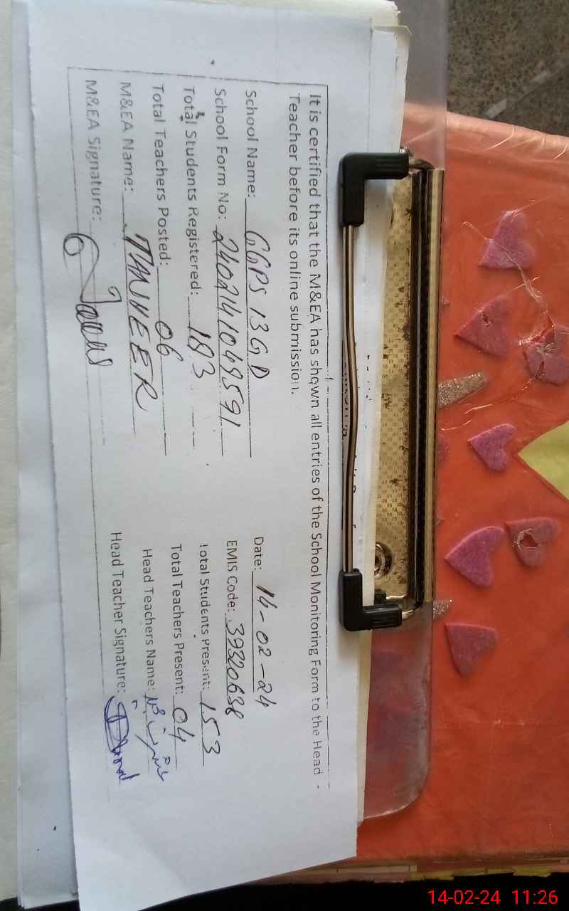 | Certified that this School was Inspected by the Undersigned MEA/DMO Today and the Information Stated Above is as Per Record. | |||||