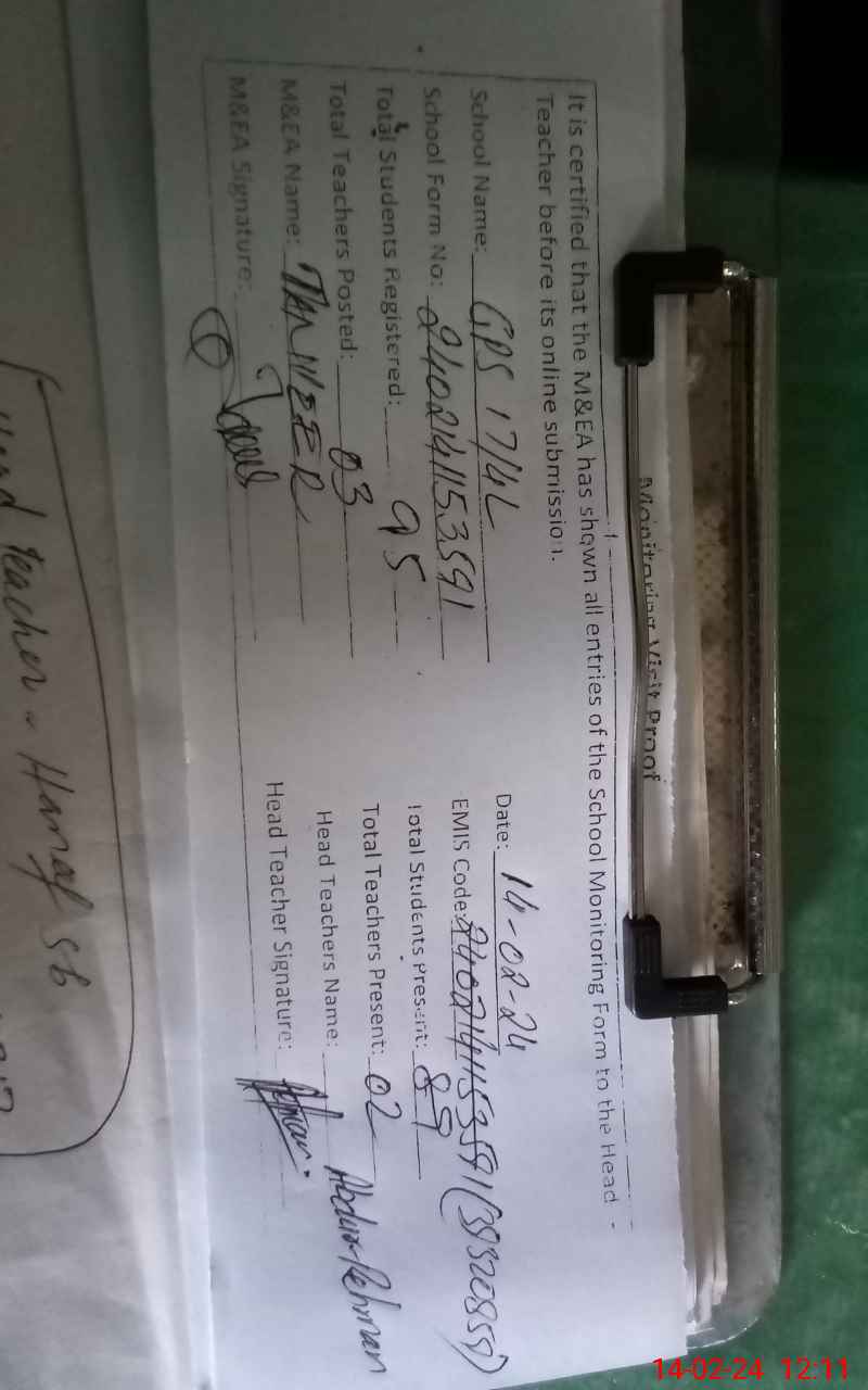 | EMIS Code: 39320859 | Name of School: GPS 17/4-L OKARA CANTT | |||