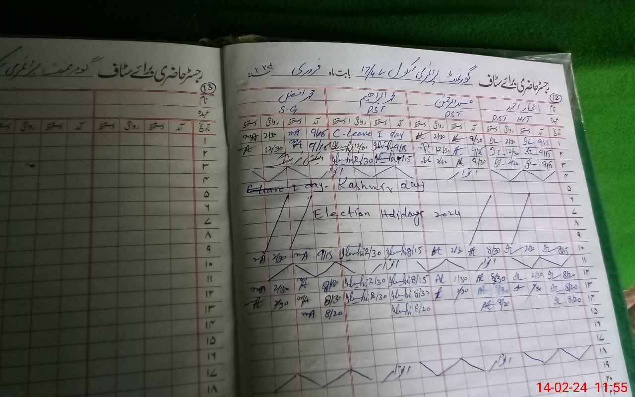 | CNIC | Full Name | Designation | R/C | Absence During Last Calender Month |
