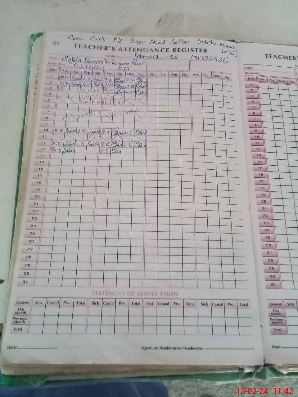 | Name: Sa**** Pe**** Designation: (School Headmaster's/Headmistress's) PST Phone/Cell Number: 03**** |
