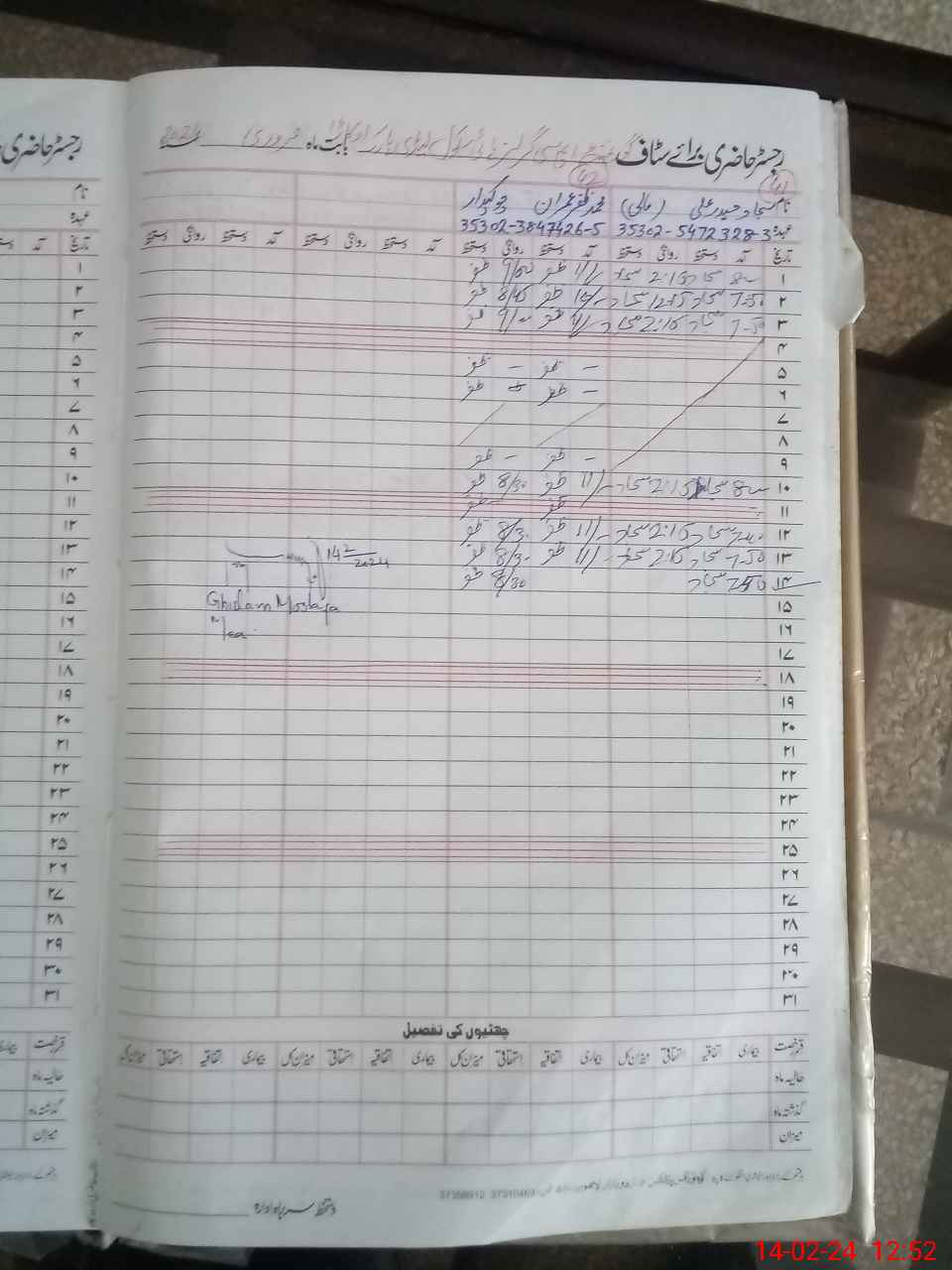 | CNIC | Full Name | Designation | R/C | Absence During Last Calender Month |