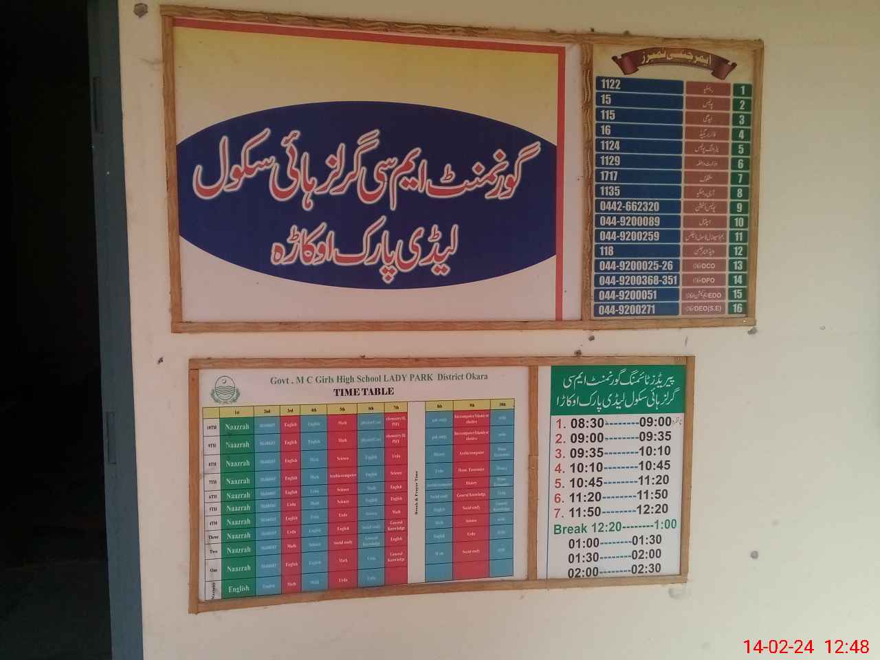 | EMIS Code: 39320075 | Name of School: GGHS MC LADY PARK OKARA | |||