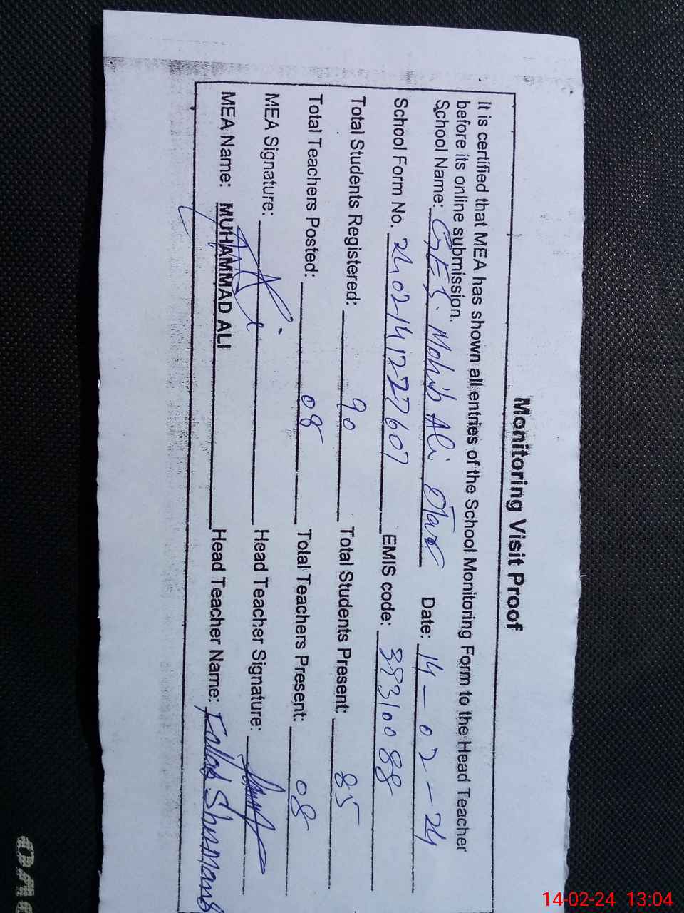 | Certified that this School was Inspected by the Undersigned MEA/DMO Today and the Information Stated Above is as Per Record. | |||||
