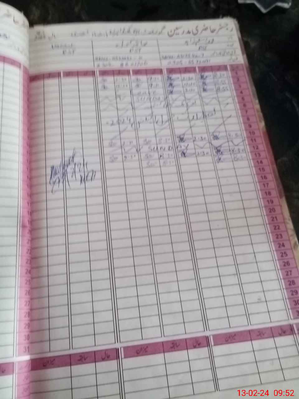 | CNIC | Full Name | Designation | R/C | Absence During Last Calender Month |