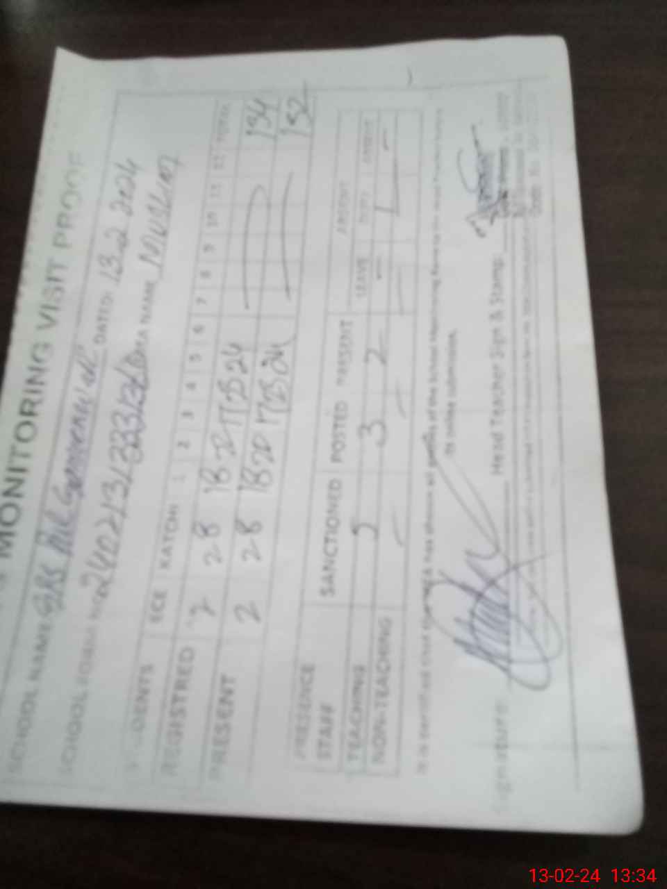 | Attendance Register | Head Teacher | MEA with School | Visit Proof |