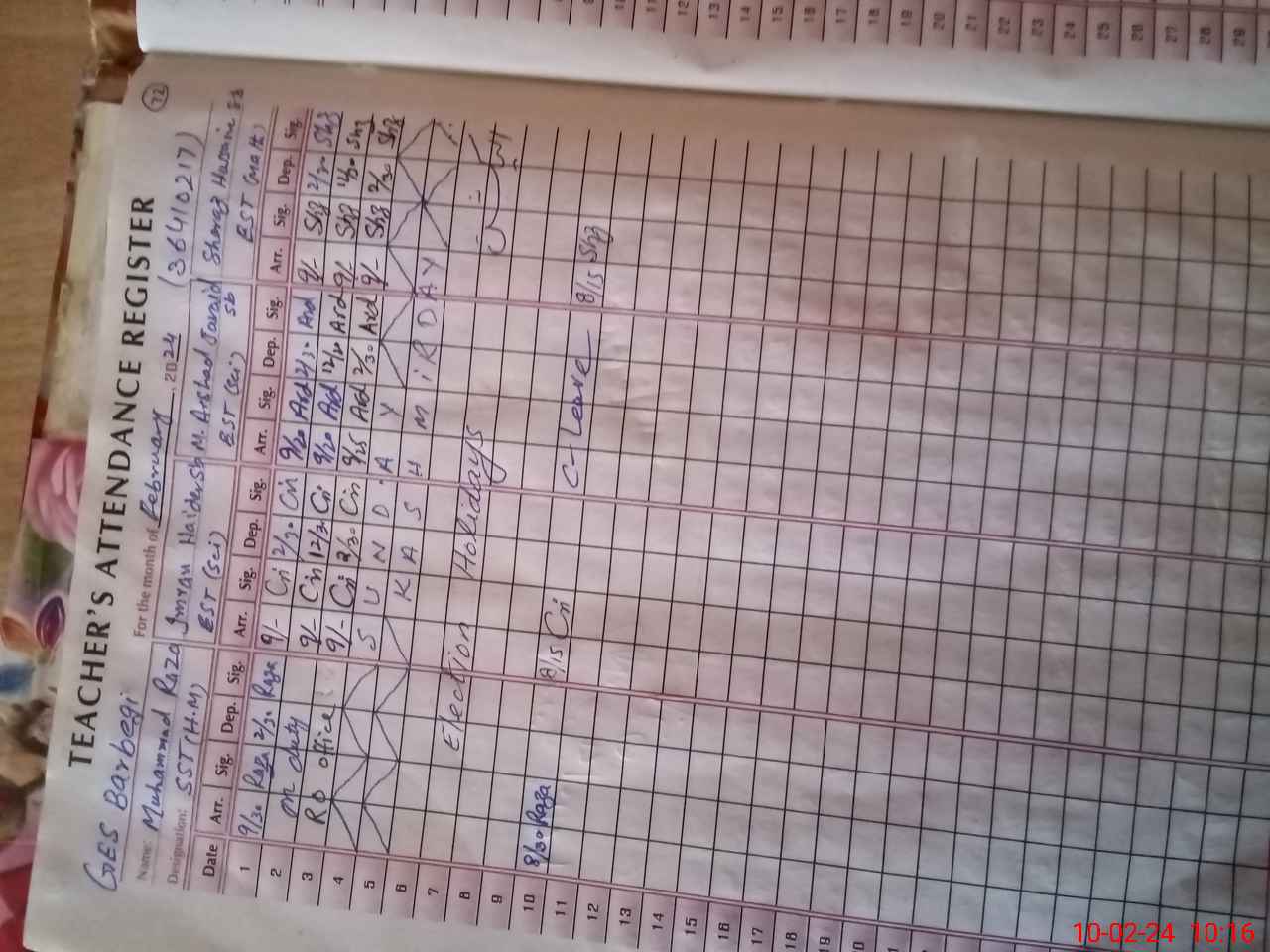 | CNIC | Full Name | Designation | R/C | Absence During Last Calender Month |