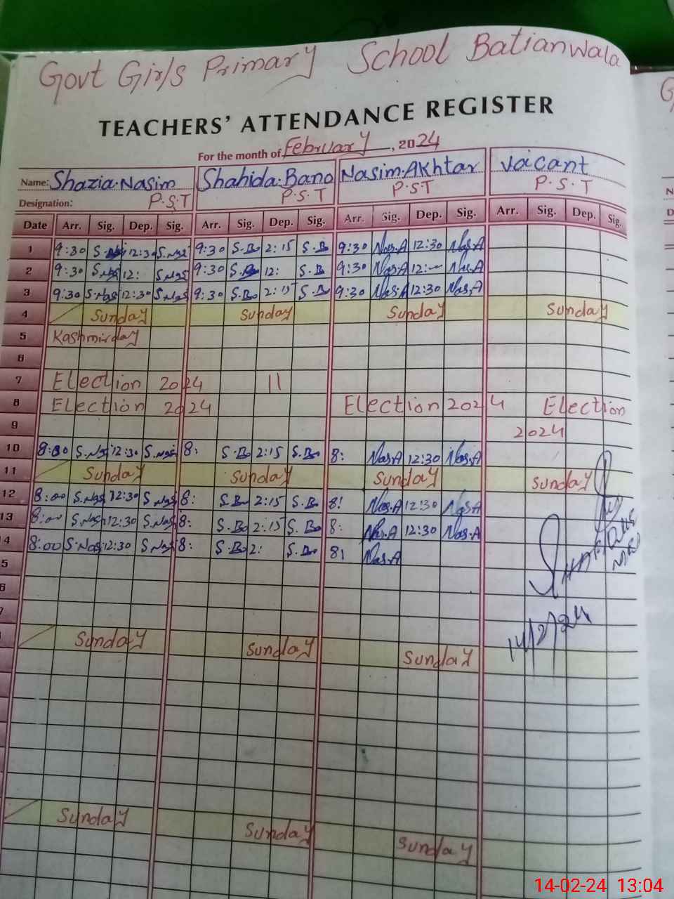 | Name: SH**** NA**** Designation: (School Headmaster's/Headmistress's) PST Phone/Cell Number: 03**** |