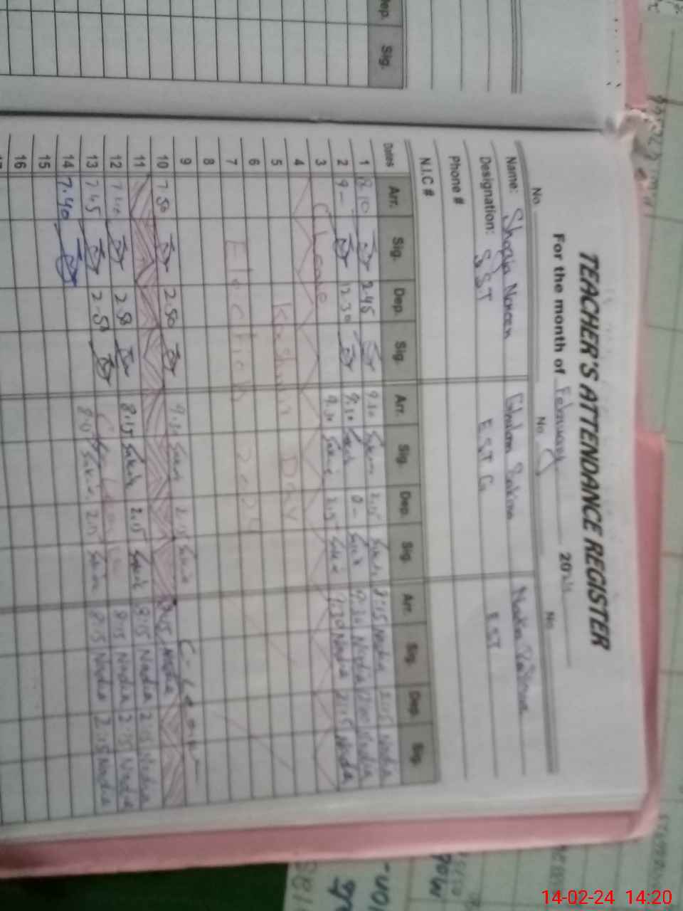 | Name: SE**** KH**** Designation: (School Headmaster's/Headmistress's) S.S.T SC Phone/Cell Number: 03**** |