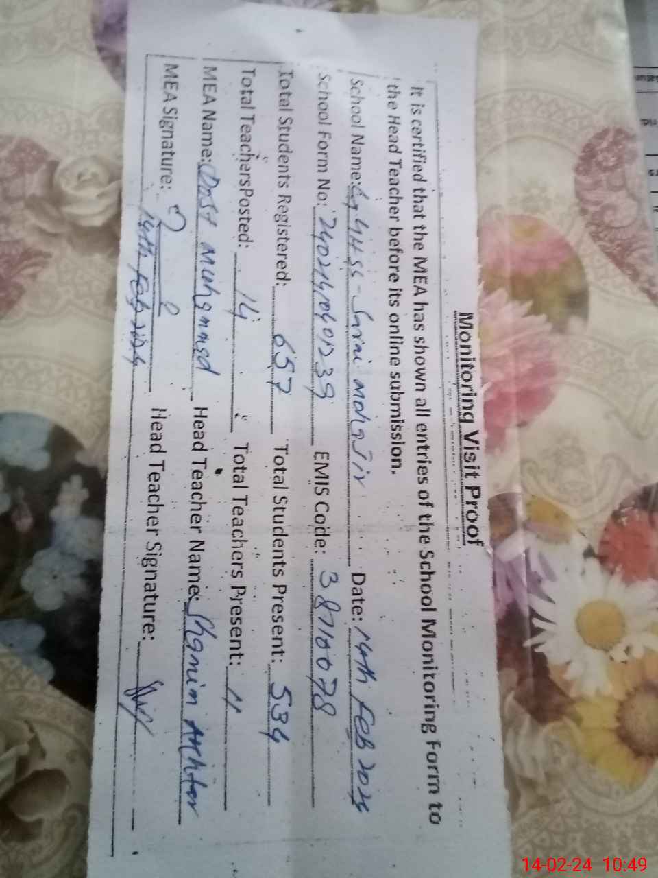 | EMIS Code: 38110078 | Name of School: GGHSS SARAI MUHAJAR | |||
