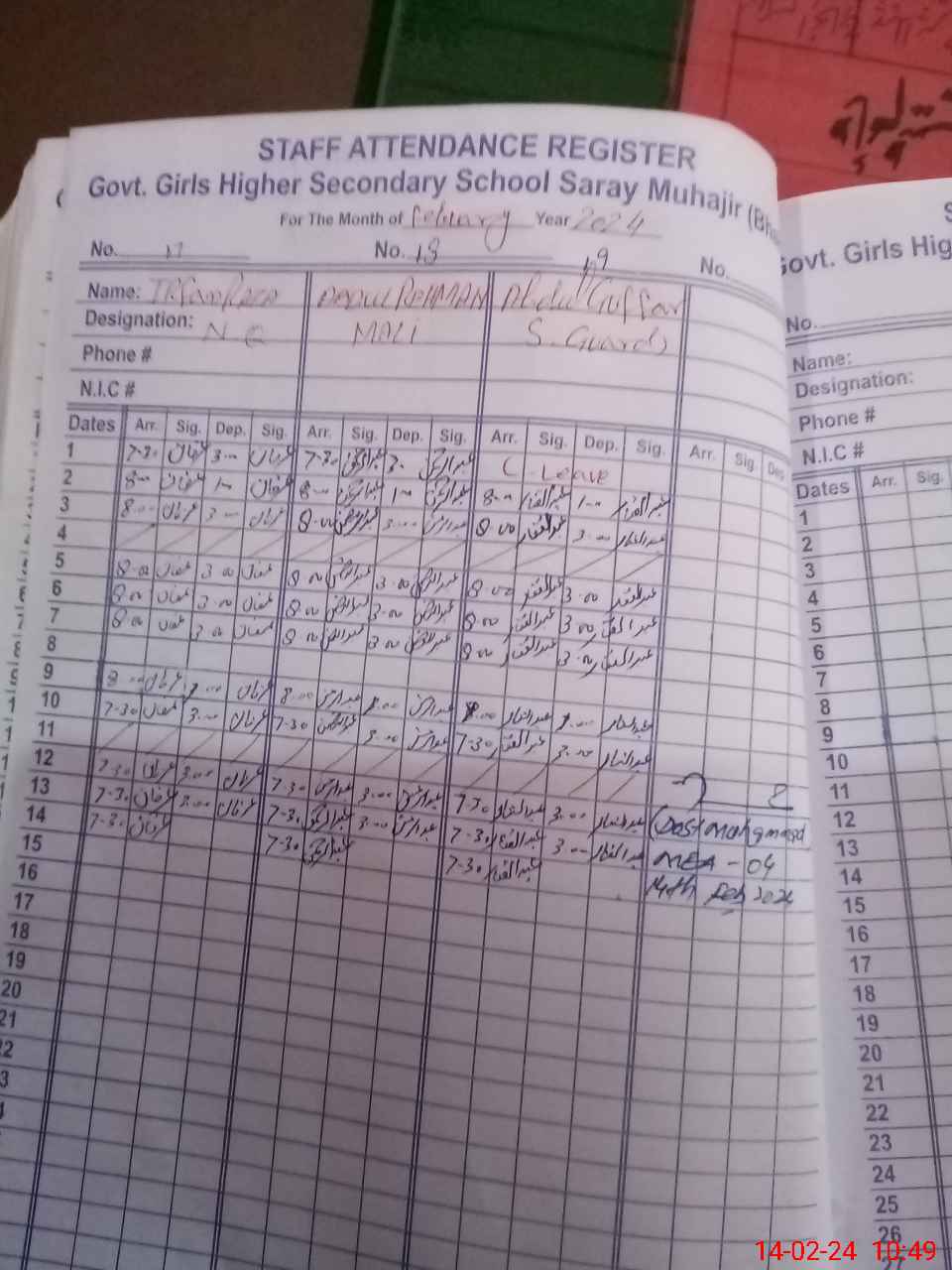 | Remarks (Use Separate Page if Required): All the entered data loudly share with the head teacher before submitting and also Shakerla Masood Designated PST on synctioned Iddat leave and also building dangerous of the Eastern side | |||||