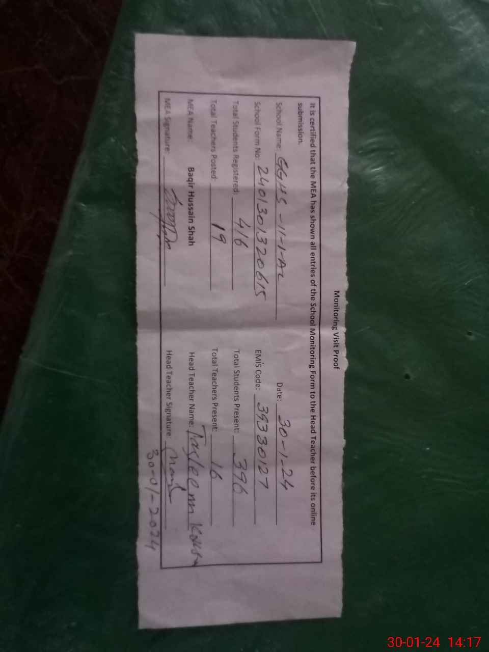 | Certified that this School was Inspected by the Undersigned MEA/DMO Today and the Information Stated Above is as Per Record. | |||||