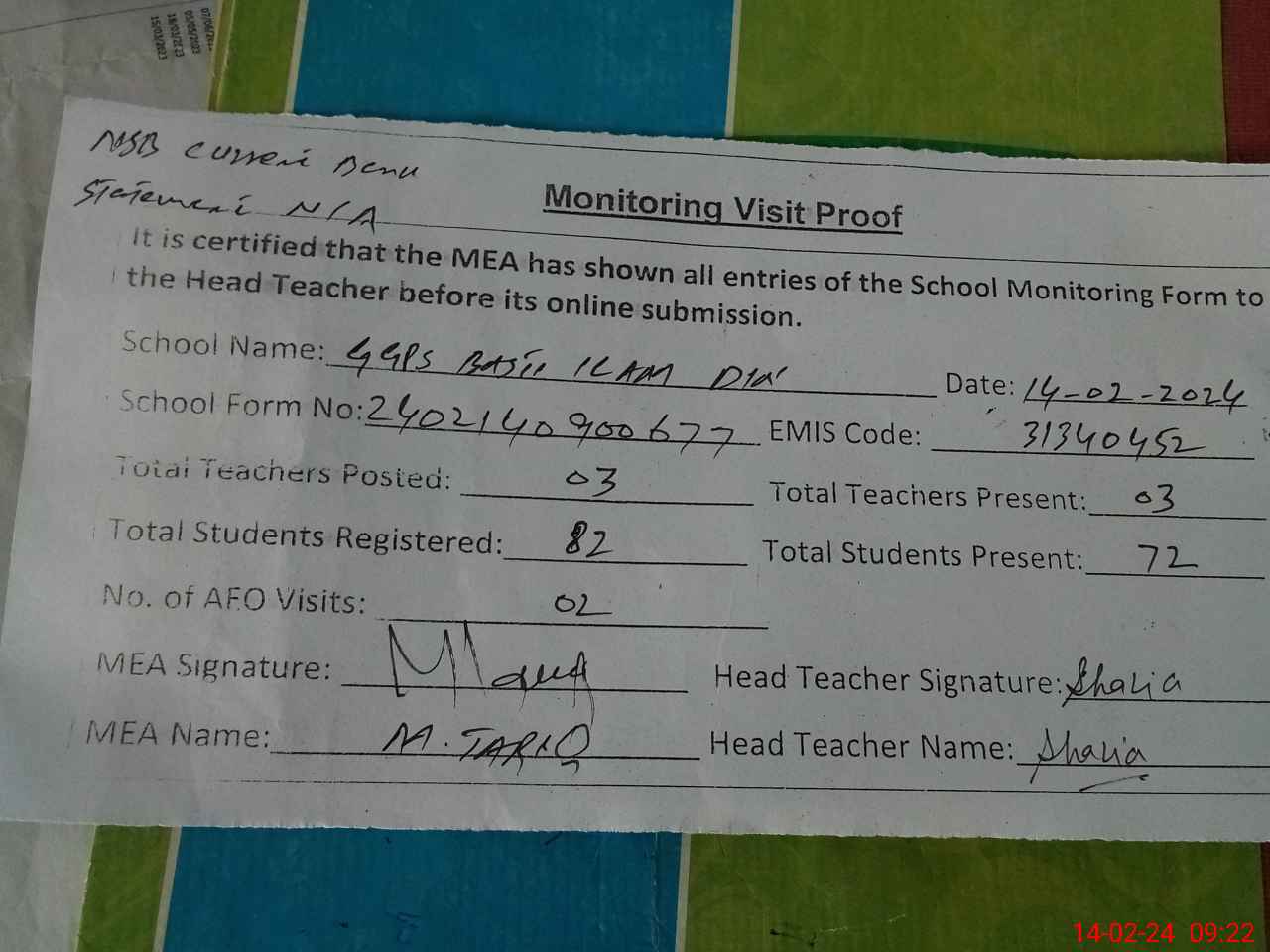 | EMIS Code: 31340452 | Name of School: GGPS BASTI ILAM DIN | |||