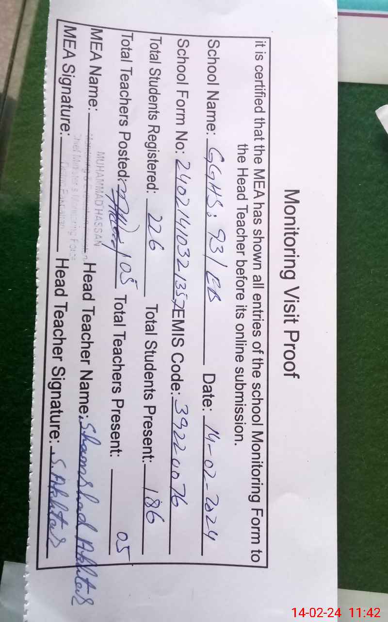 | EMIS Code: 39220076 | Name of School: GGHS 93 EB | |||