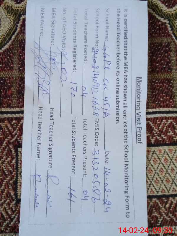 | EMIS Code: 31320586 | Name of School: GGPS CHAK NO.45/A | |||