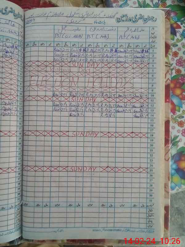 | CNIC | Full Name | Designation | R/C | Absence During Last Calender Month |