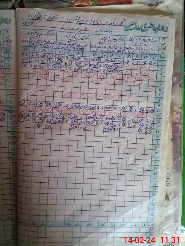| Name: SA**** HA**** Designation: (School Headmaster's/Headmistress's) PST/PTC/JV Phone/Cell Number: 03**** |