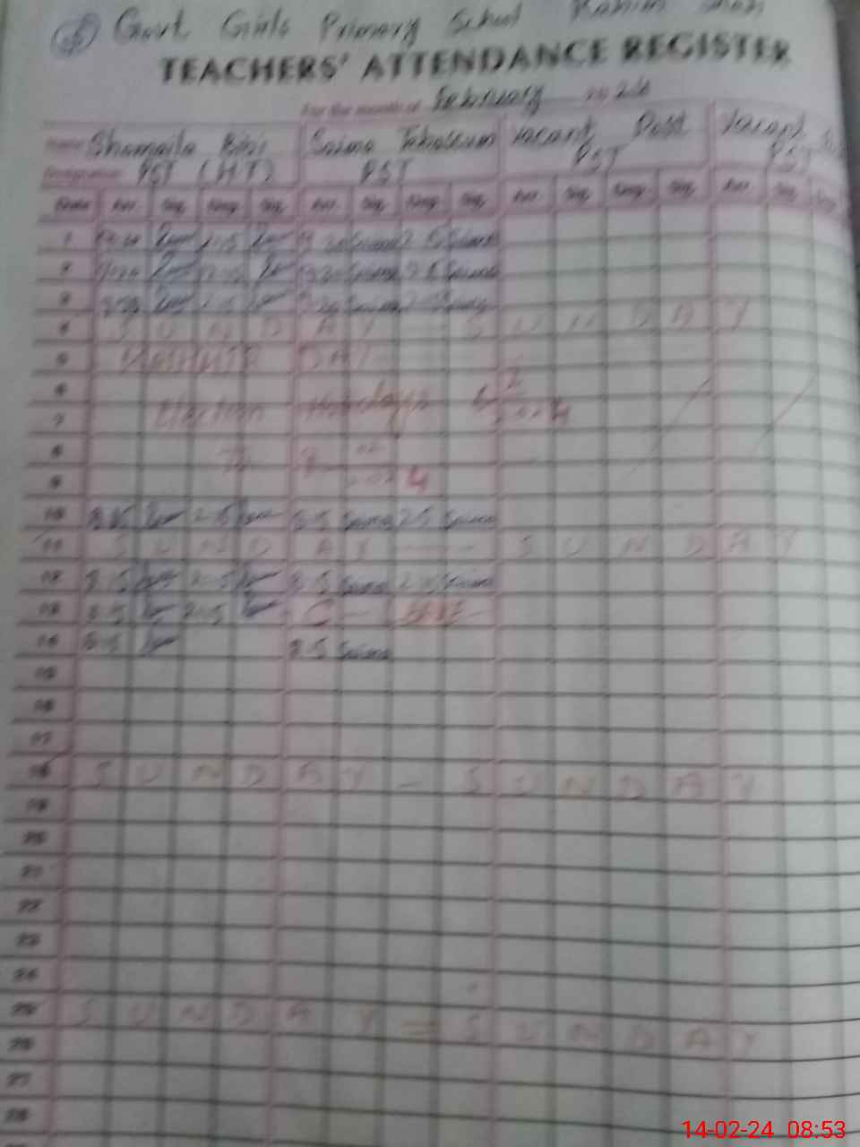 | Name: Sh**** Bi**** Designation: (School Headmaster's/Headmistress's) Pst Phone/Cell Number: 03**** |