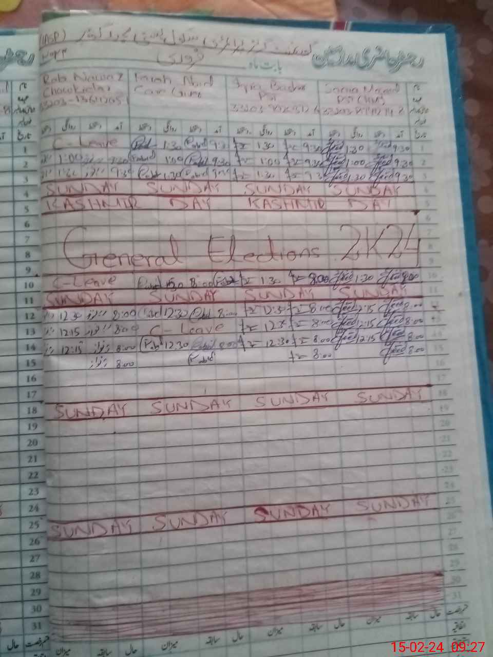 | CNIC | Full Name | Designation | R/C | Absence During Last Calender Month |