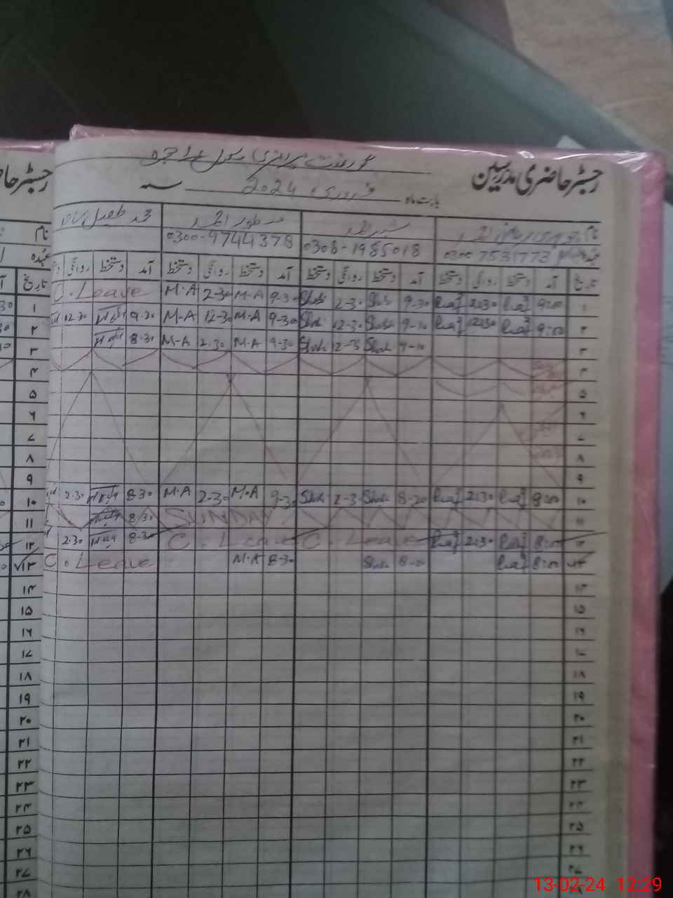 | CNIC | Full Name | Designation | R/C | Absence During Last Calender Month |