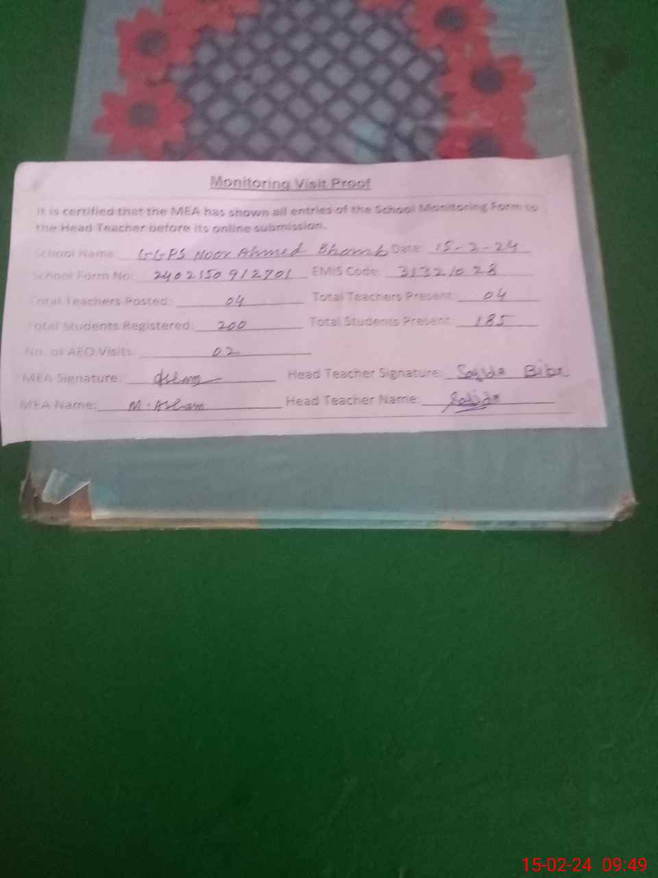 | EMIS Code: 31321028 | Name of School: GGPS NOOR AHMED BHOMB | |||