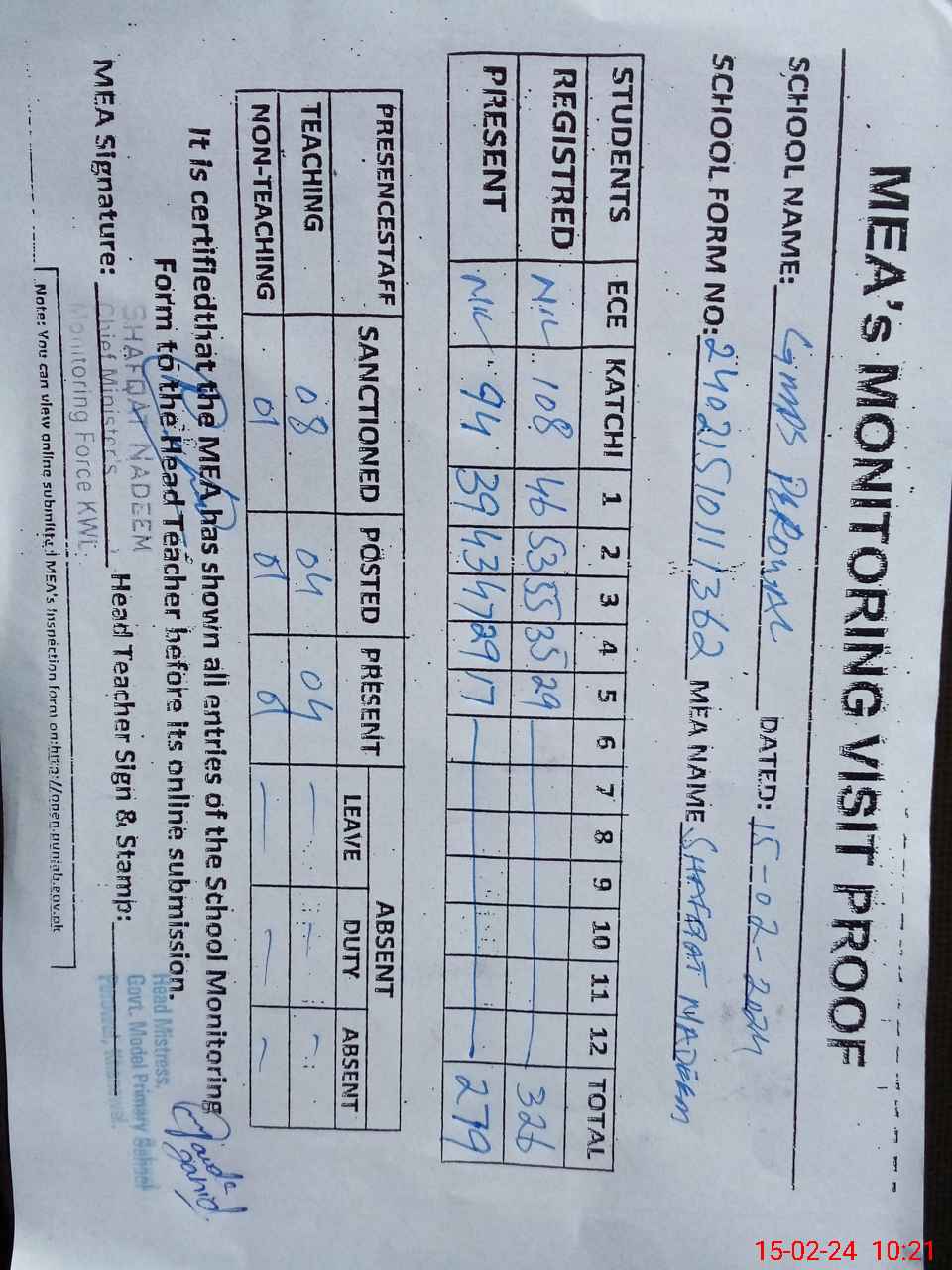 | EMIS Code: 36420412 | Name of School: GPS MODEL PEROWAL, KHANEWAL | |||