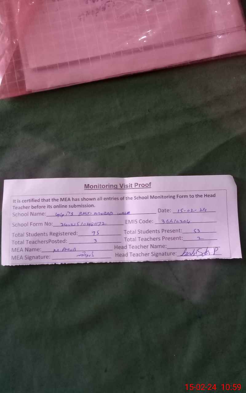 | EMIS Code: 36610204 | Name of School: GGPS BASTI MURAD WALA | |||