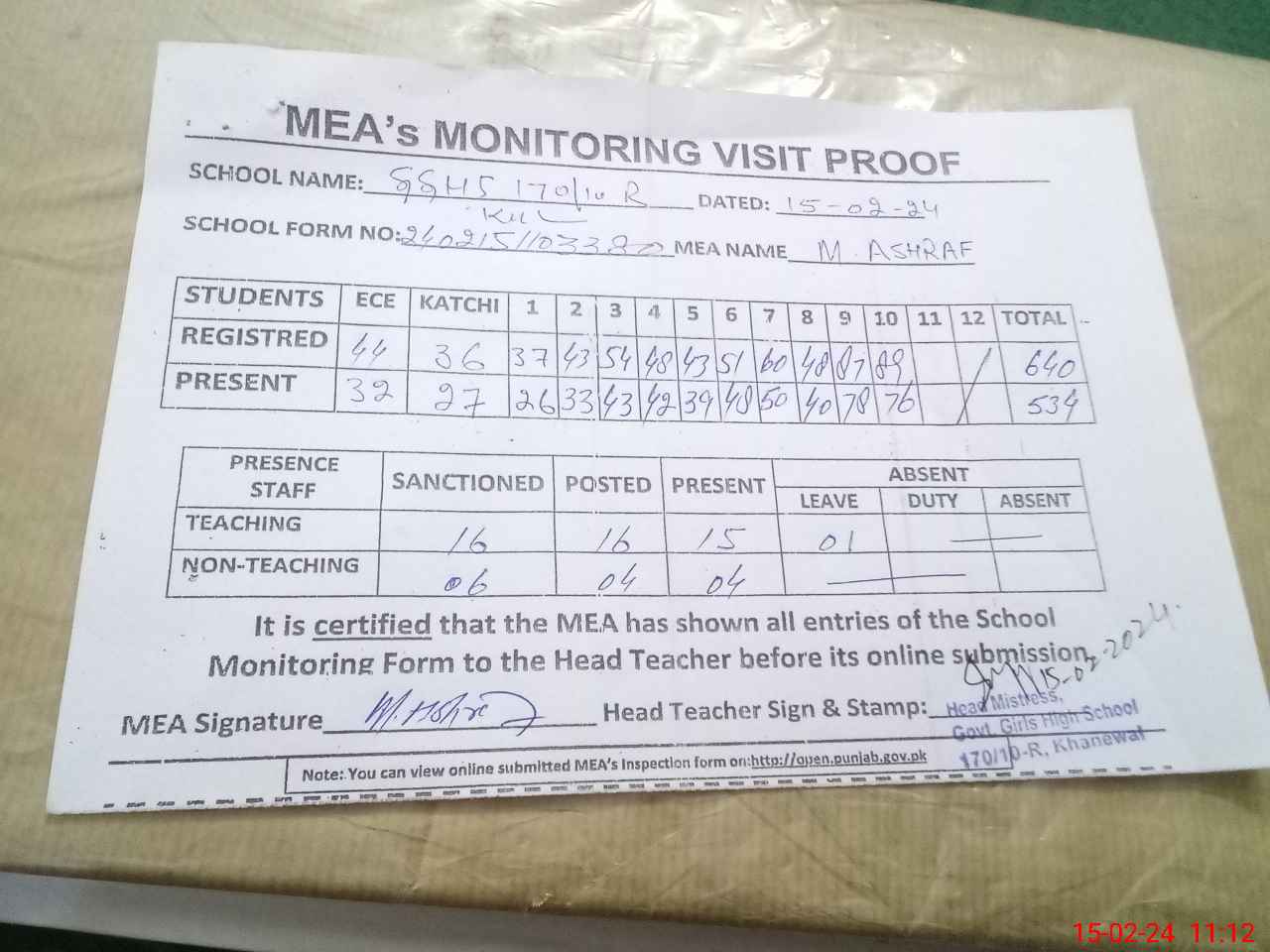 | EMIS Code: 36420094 | Name of School: GGHS 170/10-R, KHANEWAL | |||