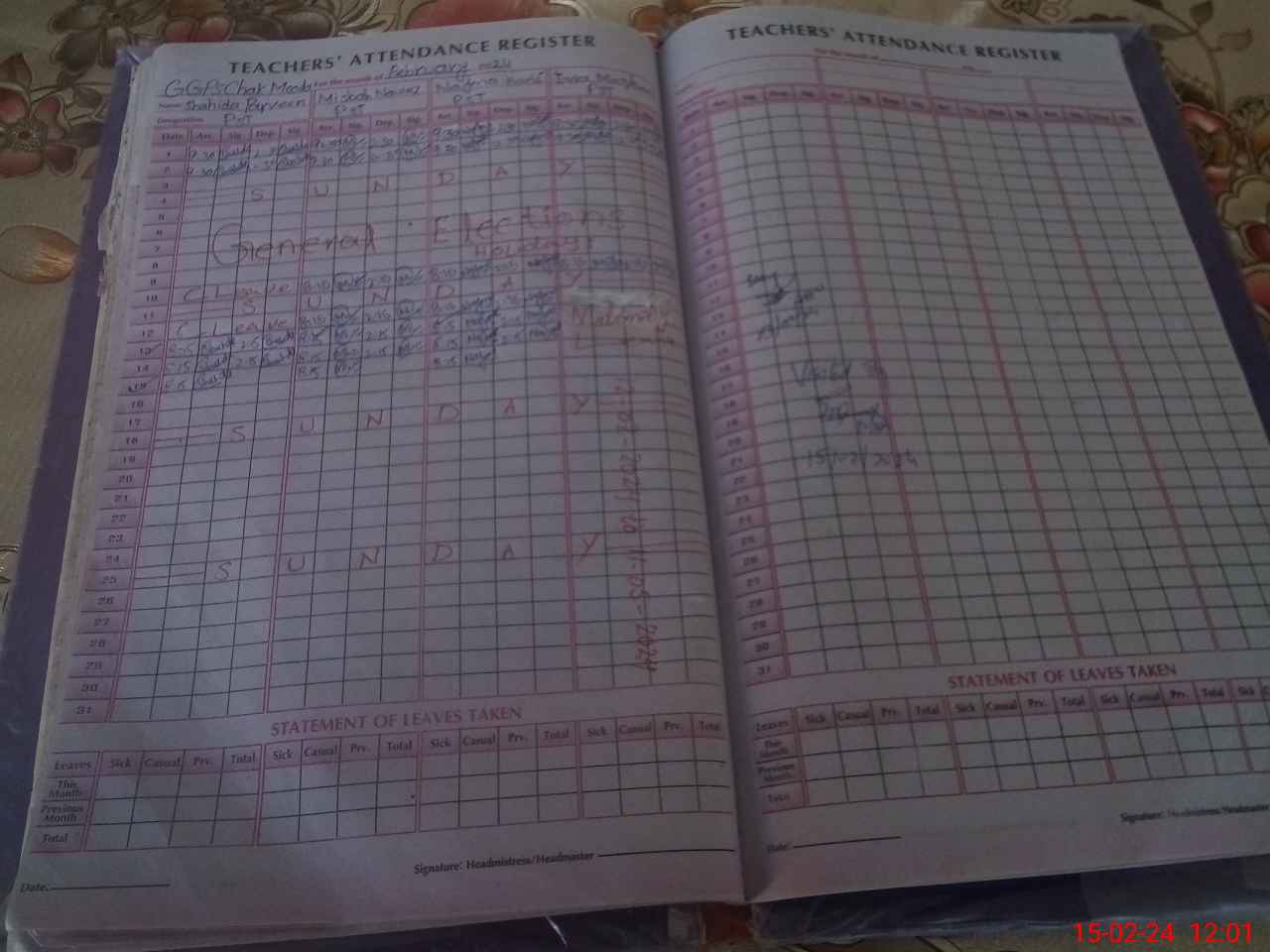 | Leave | Duty | Absent | Maternity | Medical | Ex- Pak |
