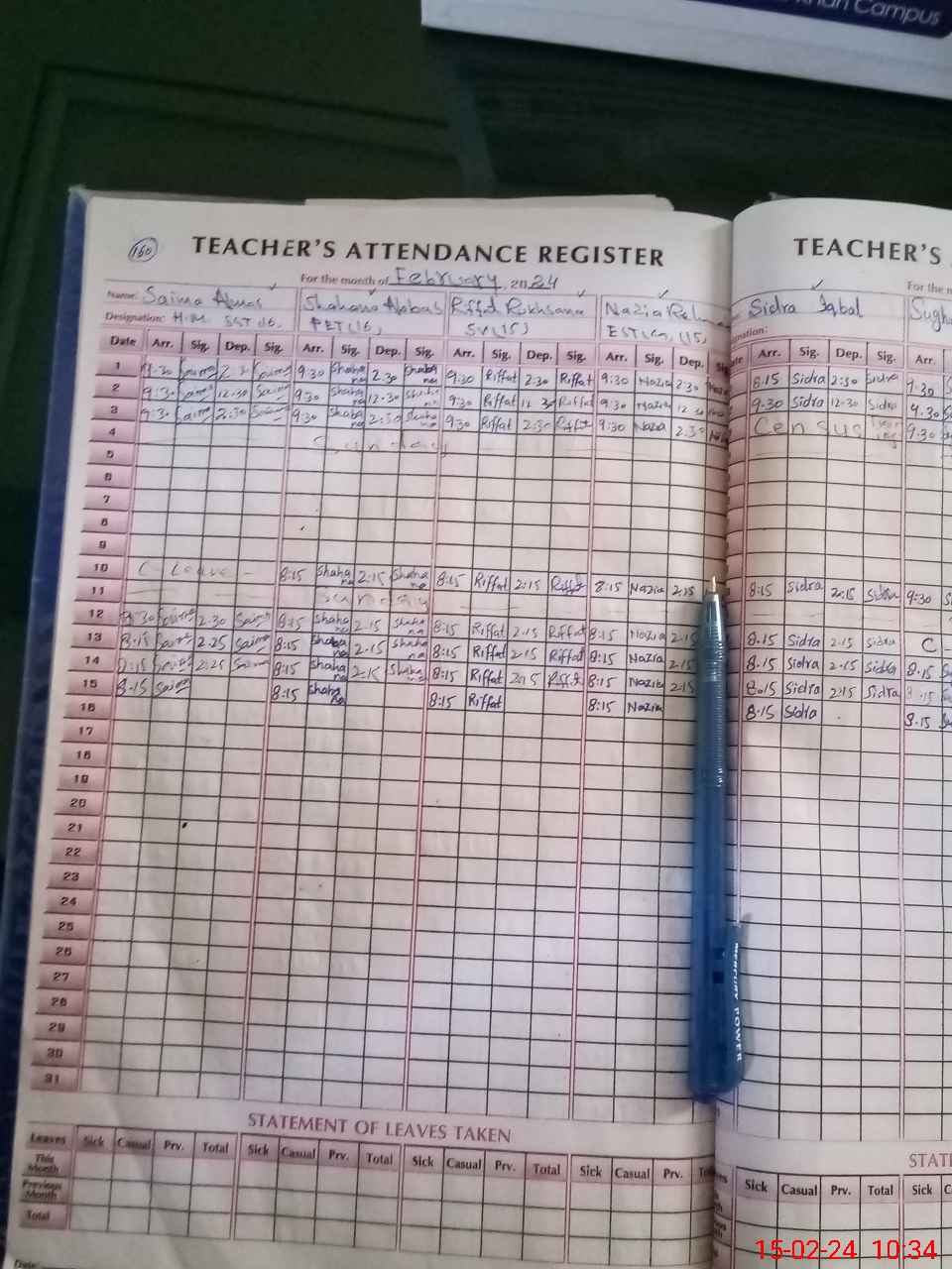 | Leave | Duty | Absent | Maternity | Medical | Ex- Pak |