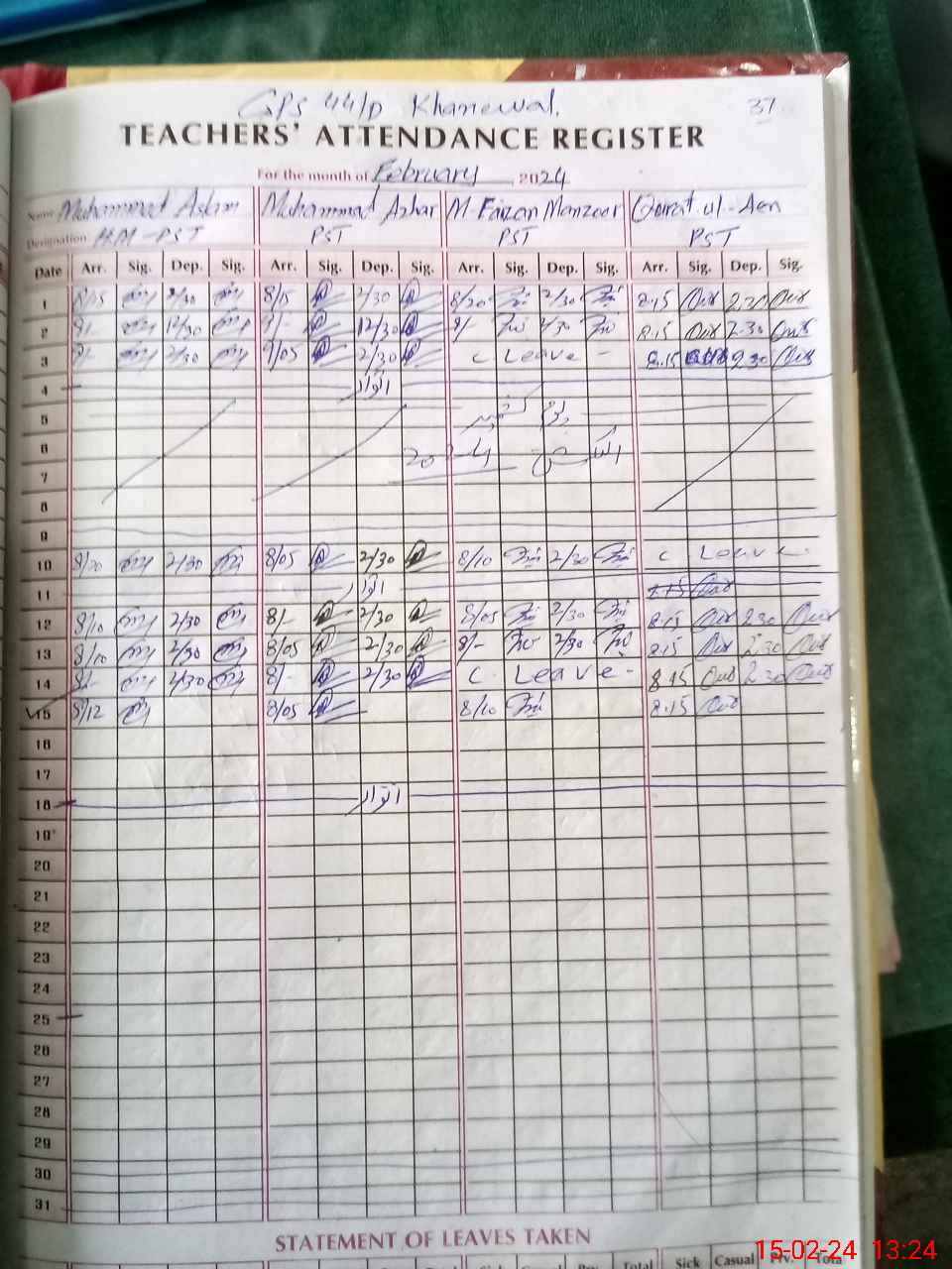 | Leave | Duty | Absent | Maternity | Medical | Ex- Pak |