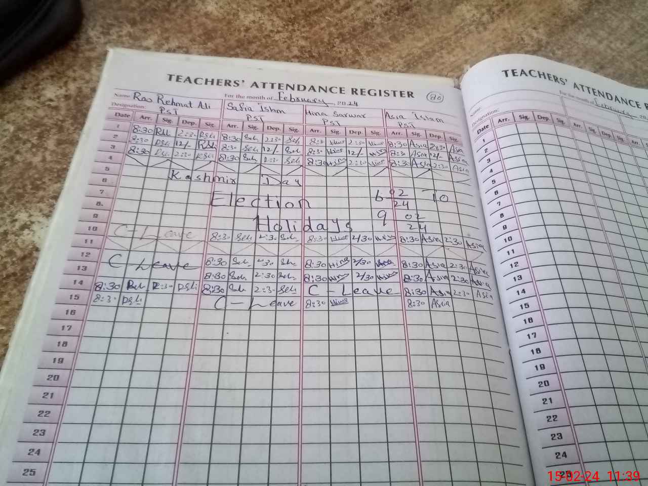 | CNIC | Full Name | Designation | R/C | Absence During Last Calender Month |