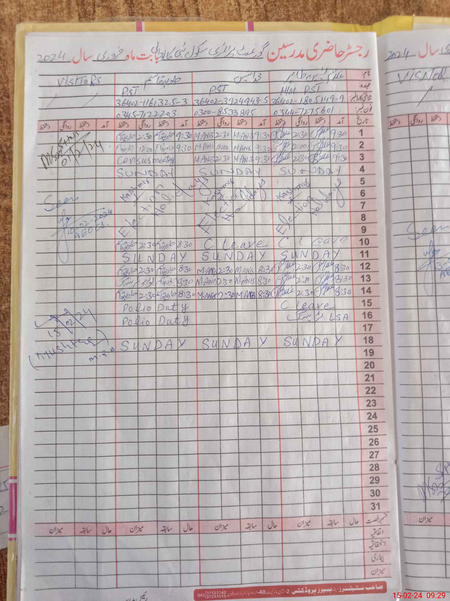 | Name: MAn**** Designation: (School Headmaster's/Headmistress's) PST Phone/Cell Number: 03**** |