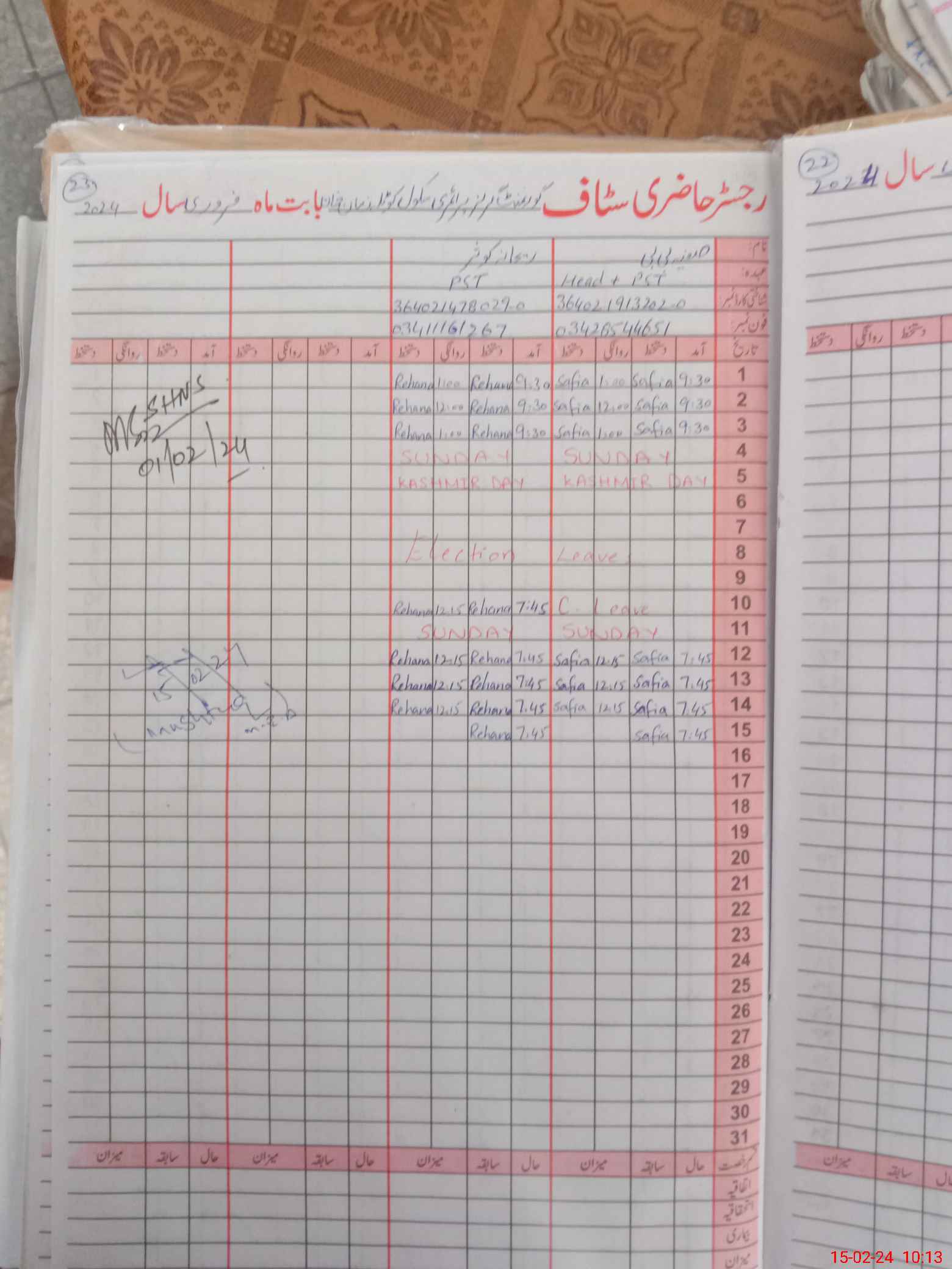 | Name: Sa**** Bi**** Designation: (School Headmaster's/Headmistress's) PST Phone/Cell Number: 03**** |