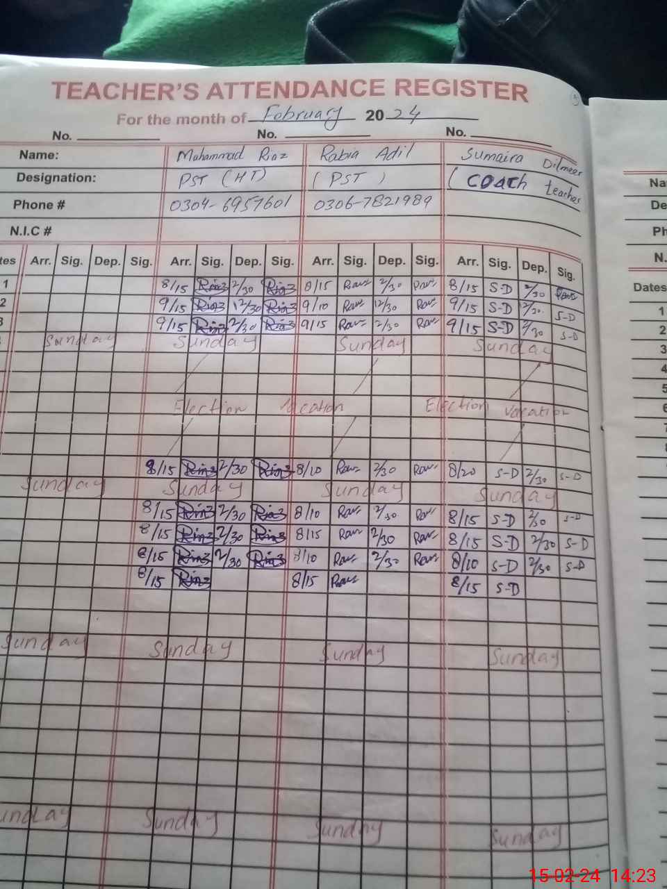 | Name: MU**** RI**** Designation: (School Headmaster's/Headmistress's) PST Phone/Cell Number: 03**** |