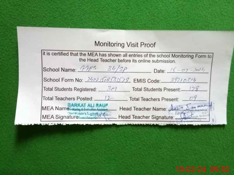 | Certified that this School was Inspected by the Undersigned MEA/DMO Today and the Information Stated Above is as Per Record. | |||||