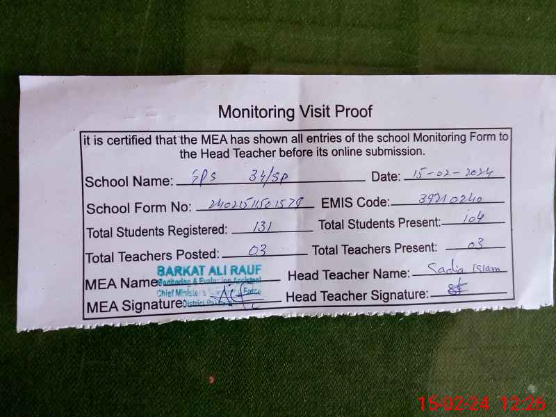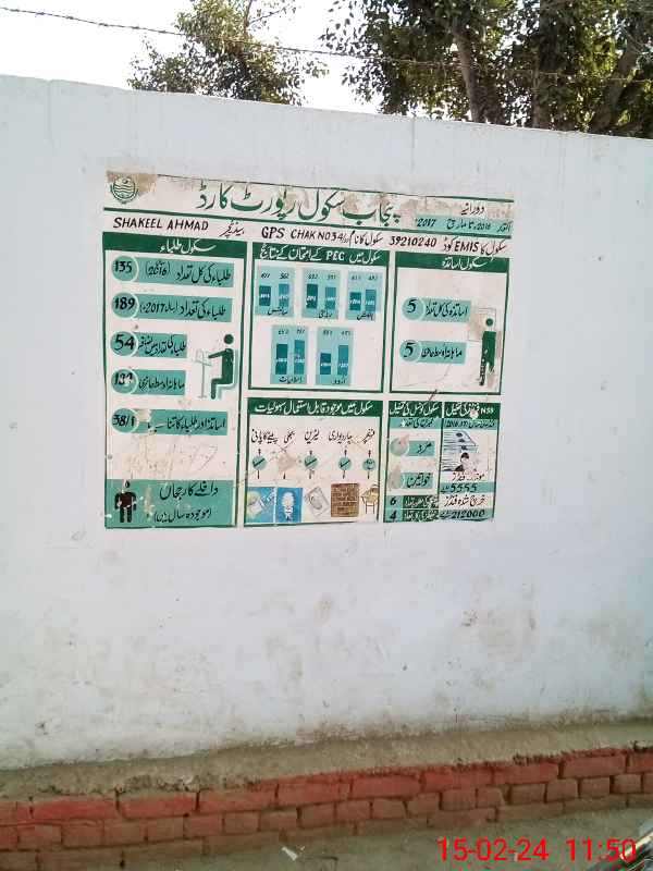 | EMIS Code: 39210240 | Name of School: GPS CHAK NO. 34 SP | |||