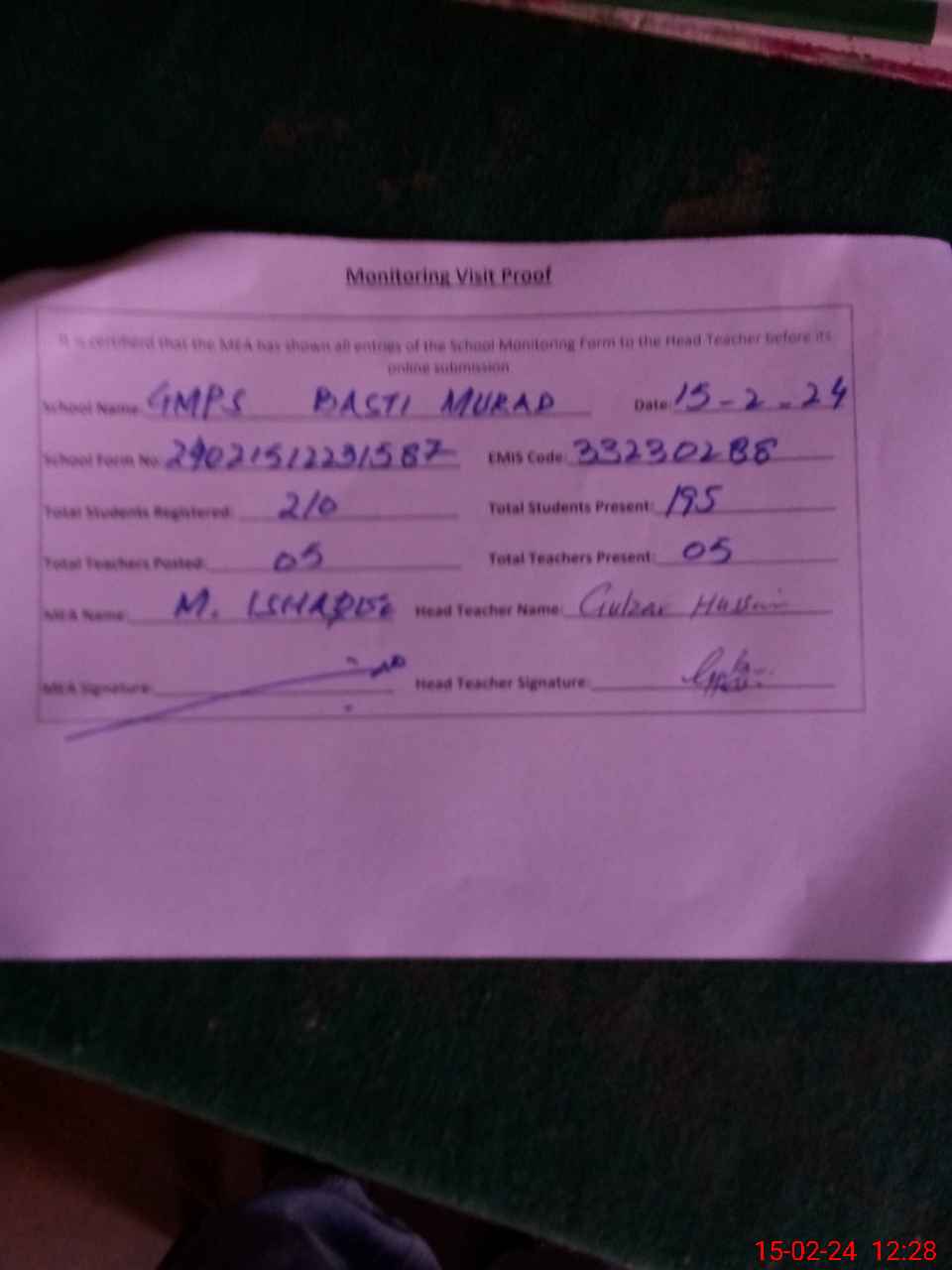 | EMIS Code: 33230288 | Name of School: GMPS BASTI MURAD | |||
