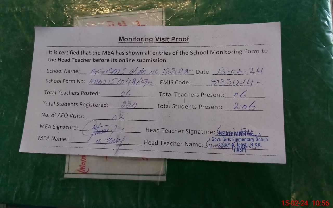 | EMIS Code: 31331214 | Name of School: GGCMS CHAK NO.123/P-A | |||